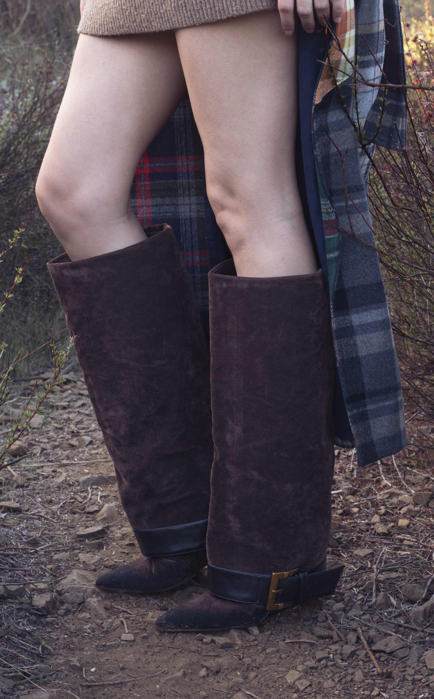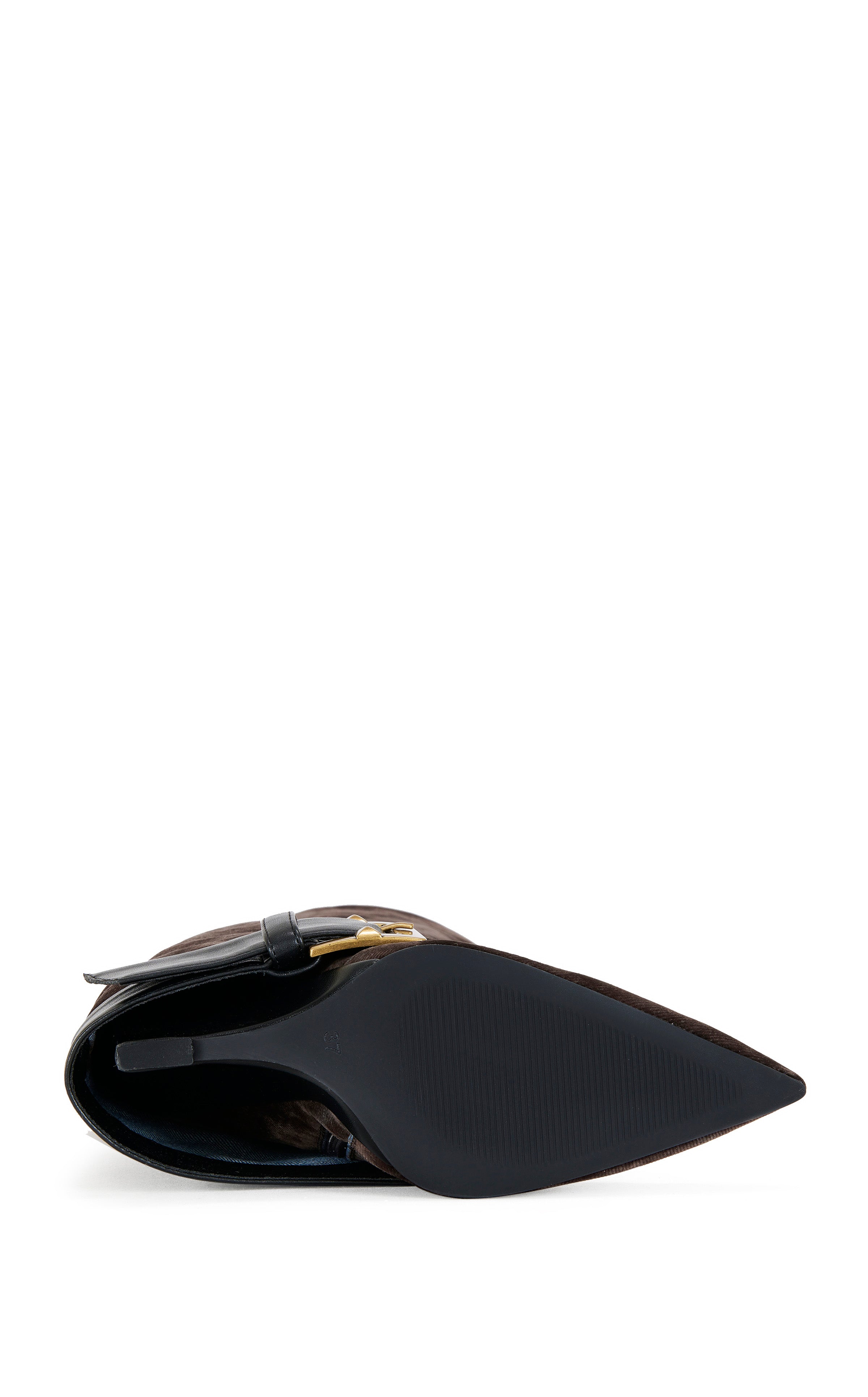 We did it for you. Tall point-toe boot with a foldover shaft and oversized belt buckle detail, serving bold structure with a fashion-forward edge.